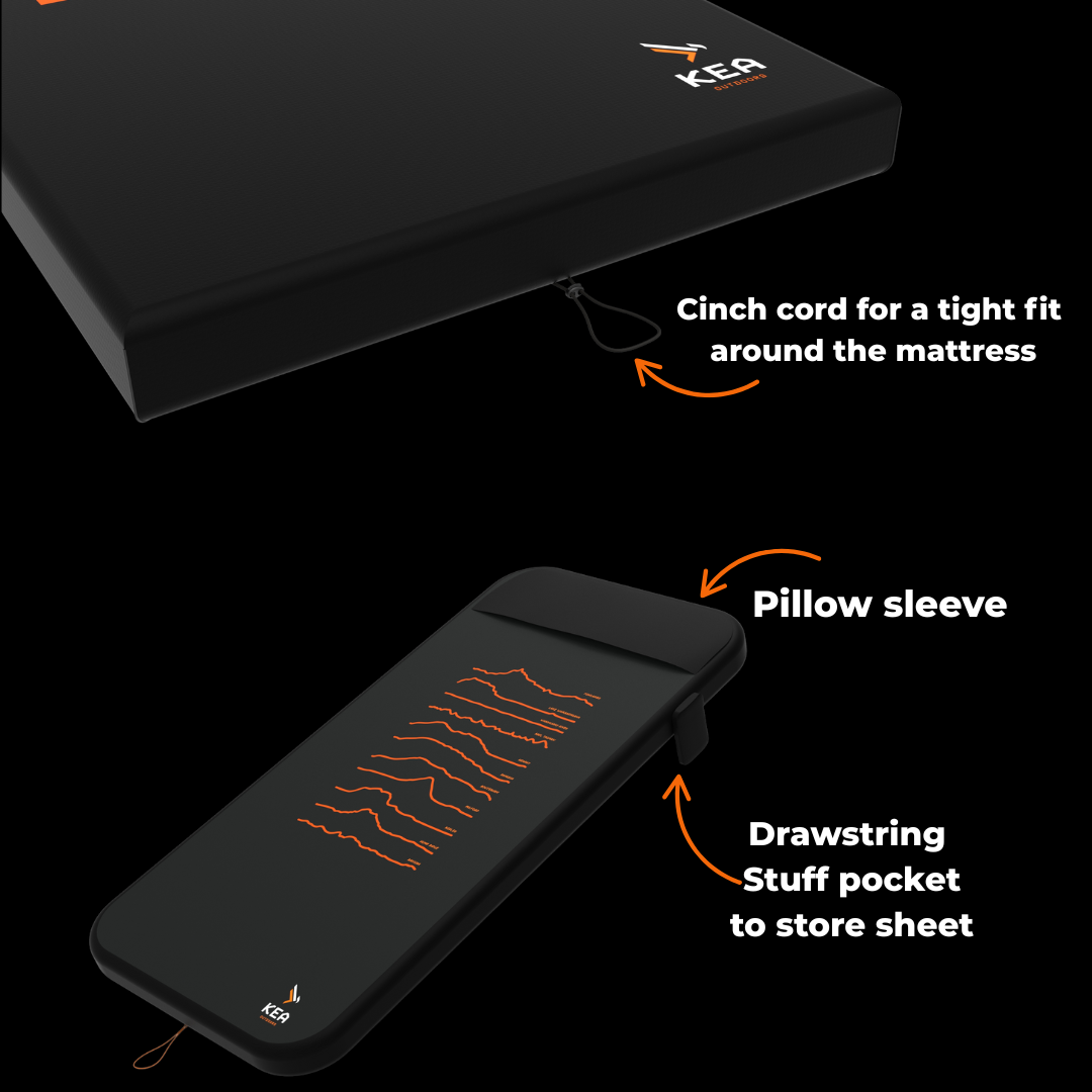A integrated cinch cord ensures a snug fit on any single mattress. Plus added luxuries of a pillow sleeve side pocket to create your little nest in the outdoors.
